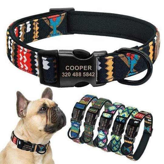Besides it’s adjustable, this French bulldog collar is made of highly-durable polyester fabric. It’s covered with soft material to prevent your furry friend from developing skin allergies. Another great thing is that they can engrave your dog’s name and your phone number. The modern hippie design is available in 5 colors and can make a great addition to your dog’s outfit.
