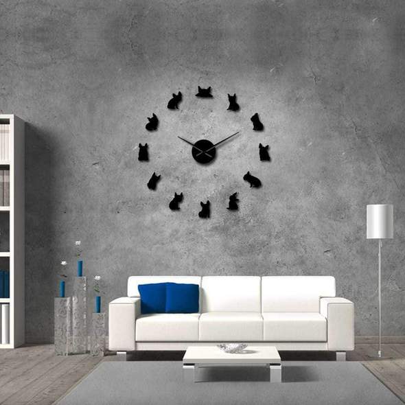 The giant French bulldog wall clock presents a perfect choice if you want to bring some Frenchie-inspired spirit into your living room. The clock is inspired by all Frenchie’s behavioral phases he goes through a day. Therefore, you can set the stickers according to your dog’s daily routine (the time for eating, sleeping, playing…).