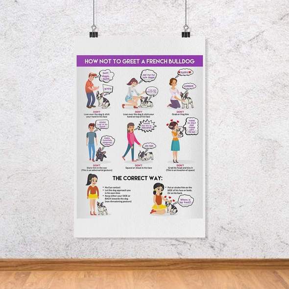 If you are searching for gift ideas for Frenchie owners, look no more because you won’t make a mistake with the following one. This poster perfectly describes how do Frenchies react to human’s greeting habits. So, next time you want to greet this little gremlin, we hope you’ll remember this poster!