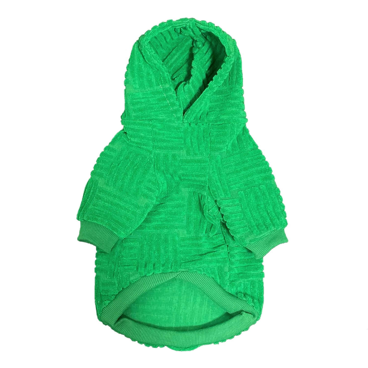 Crafted from plush, soft green terry, each hoodie boasts a distinctive geometric pattern. It exudes sophistication and ensures your Frenchie stays cozy and warm.