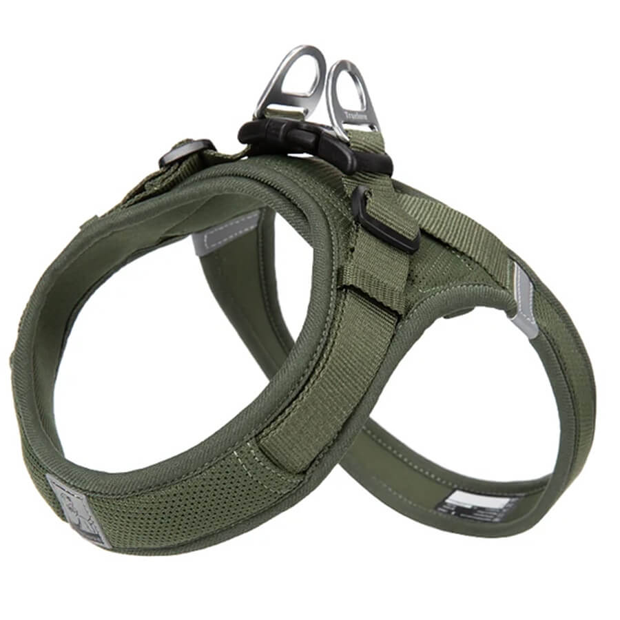 Take your Frenchie’s life quality to the next level with the Breathable Air Mesh Frenchie Harness. Its dual aluminum alloy D-rings provide a secure leash attachment point. The breathable mesh keeps your pup cool even on the warmest days.
